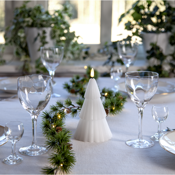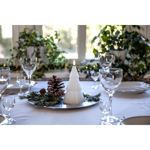 Belysning Jul LED Blockljus Flamme Gran Vit 18 cm