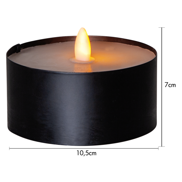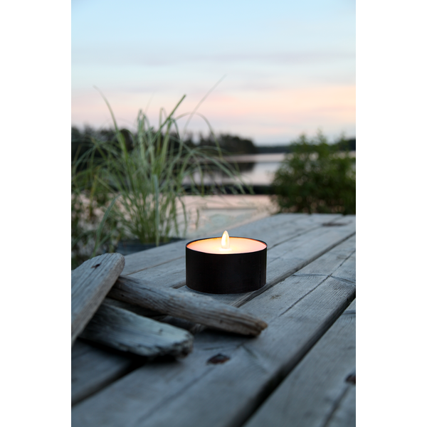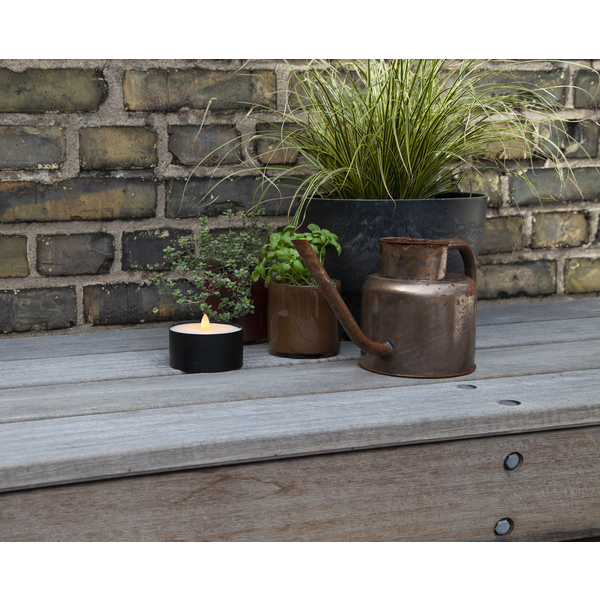 Utomhusmarschall i svart plåt och vax. Lyser med 18 LED som flammar realistiskt. Ljuset har timer funktion.