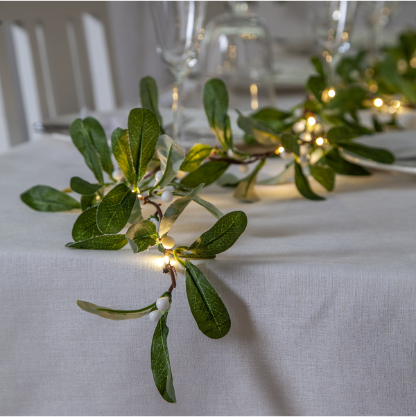 Vacker mistel girlang att dekorera med. Lyser med 20 varmvita dewdrops. Går att lysa upp med timer eller utan.