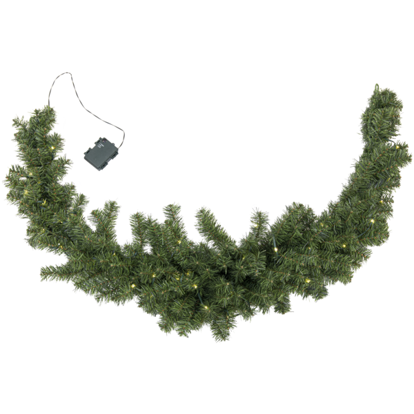 Grön girlang med 40 små ljuspunkter som lyser med ett varmvitt sken och har inbyggd timer. Längden kan varieras fritt beroende på hur mycket svängd man vill att den ska vara, som rakast är girlangen 150cm. Drivs av 3xAA batterier som ej ingår. Går att använda både inomhus och utomhus.