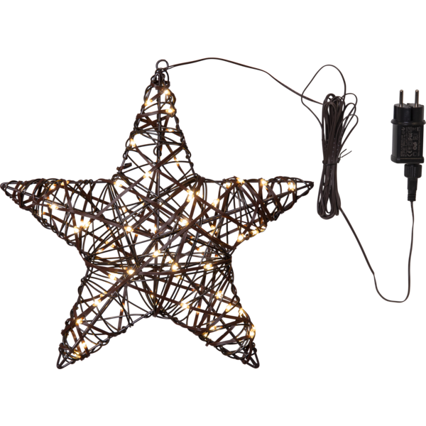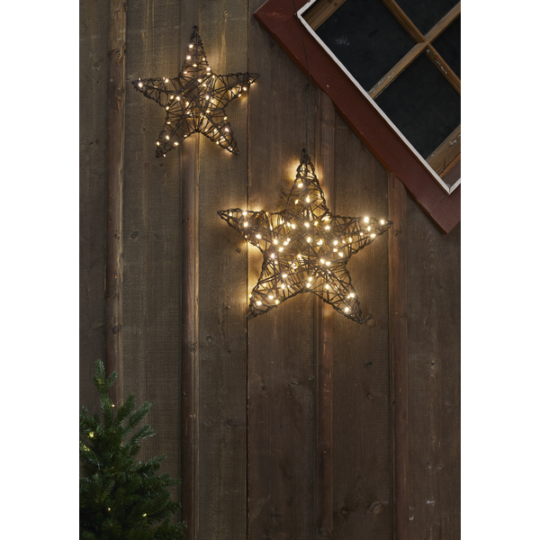40 cm stjärna i metallram med brun konstrotting, 80 st varmvita lysdioder. Dekorera din trädgård eller hem. Lämplig för både inomhus och utomhus.