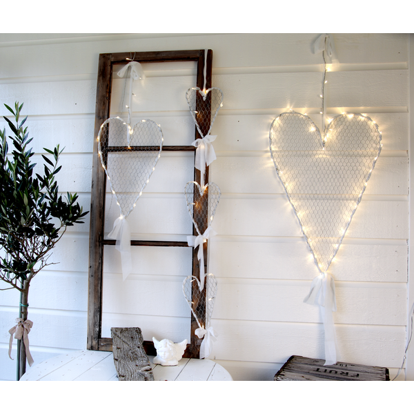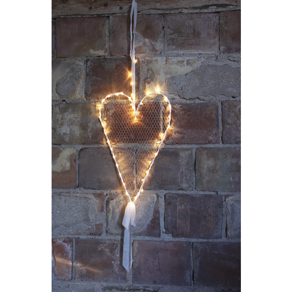 Fint hängande hjärta i rostfritt stål. Dekorationen har 40 LED-ljuskällor med varmvitt sken. Den inbyggda timern gör det lätt att ställa in när hjärtat ska lysa.