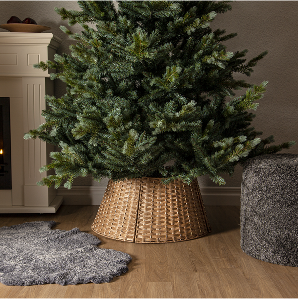 Öppen korg i fyra delar i beige-grå färg som används för att täcka julgranens fot. Storlek 62/42x30cm.