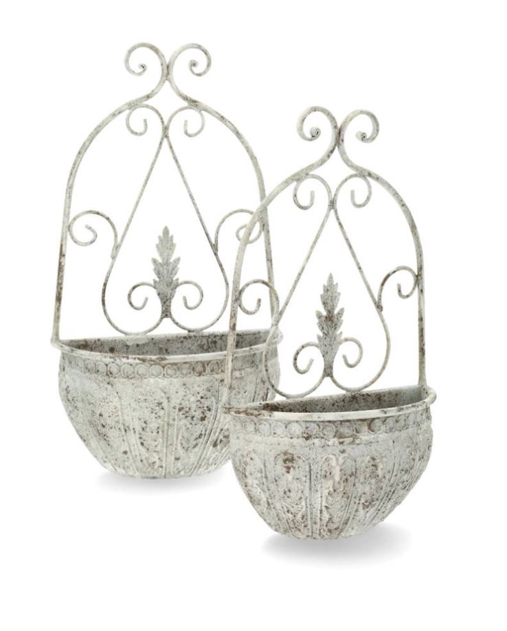 Dekorativ plantering i hemmet eller trädgården! Set med två väggkrukor i metall som gör sig fina i hall, vardagsrum, eller i trädgården.