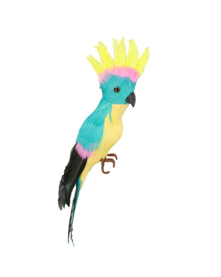 Färgglad Kakadua gjord av riktiga fjädrar och frigolit. Perfekt när du vill ha en exotisk touch i ditt hem.