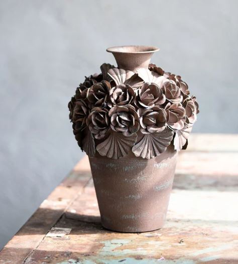 Dekorativ Vas Ofelia Blommig Brun Ø21x30cm Metall