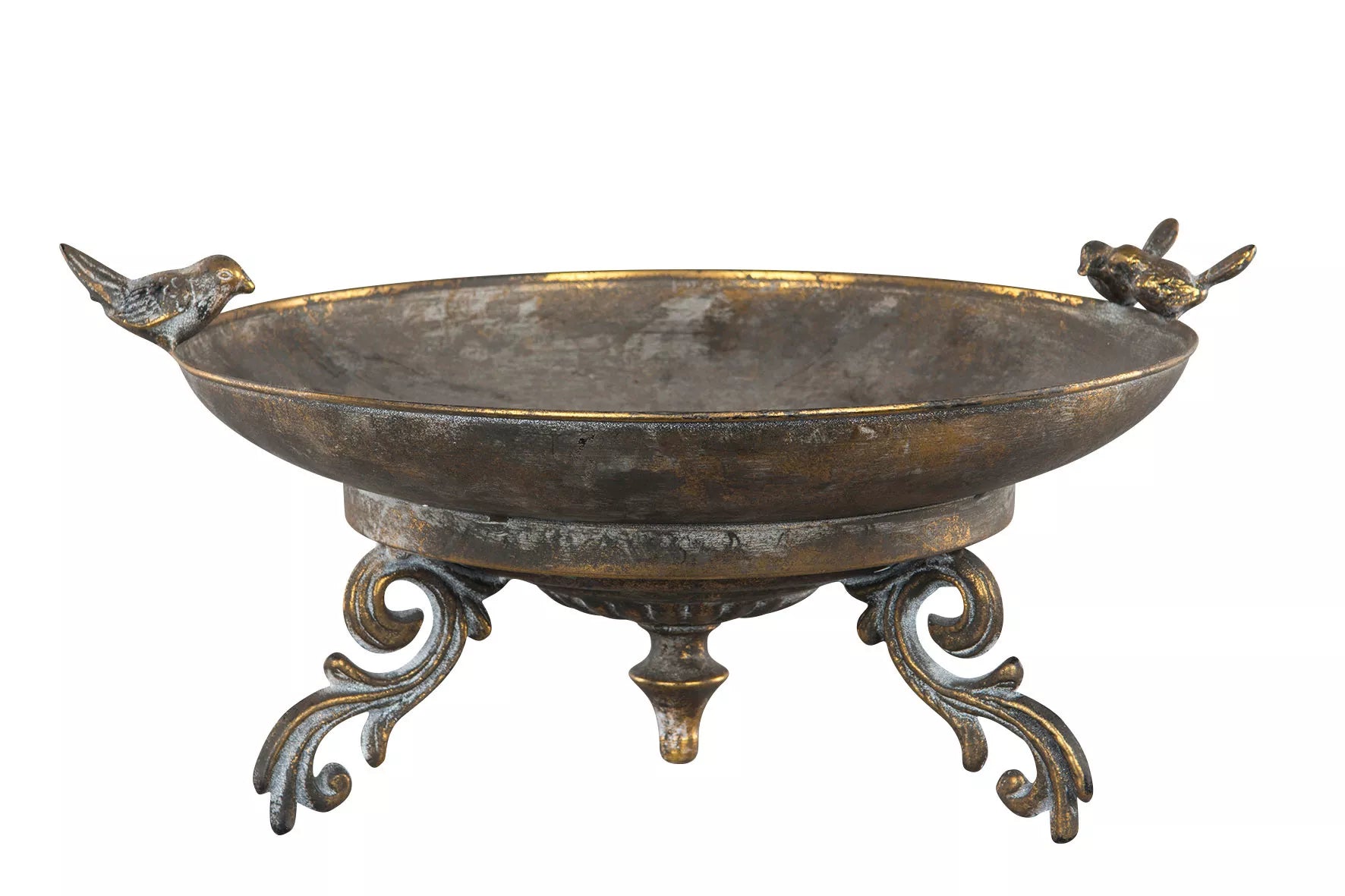 Stort, vackert och detaljrikt fågelbad i kraftig metall