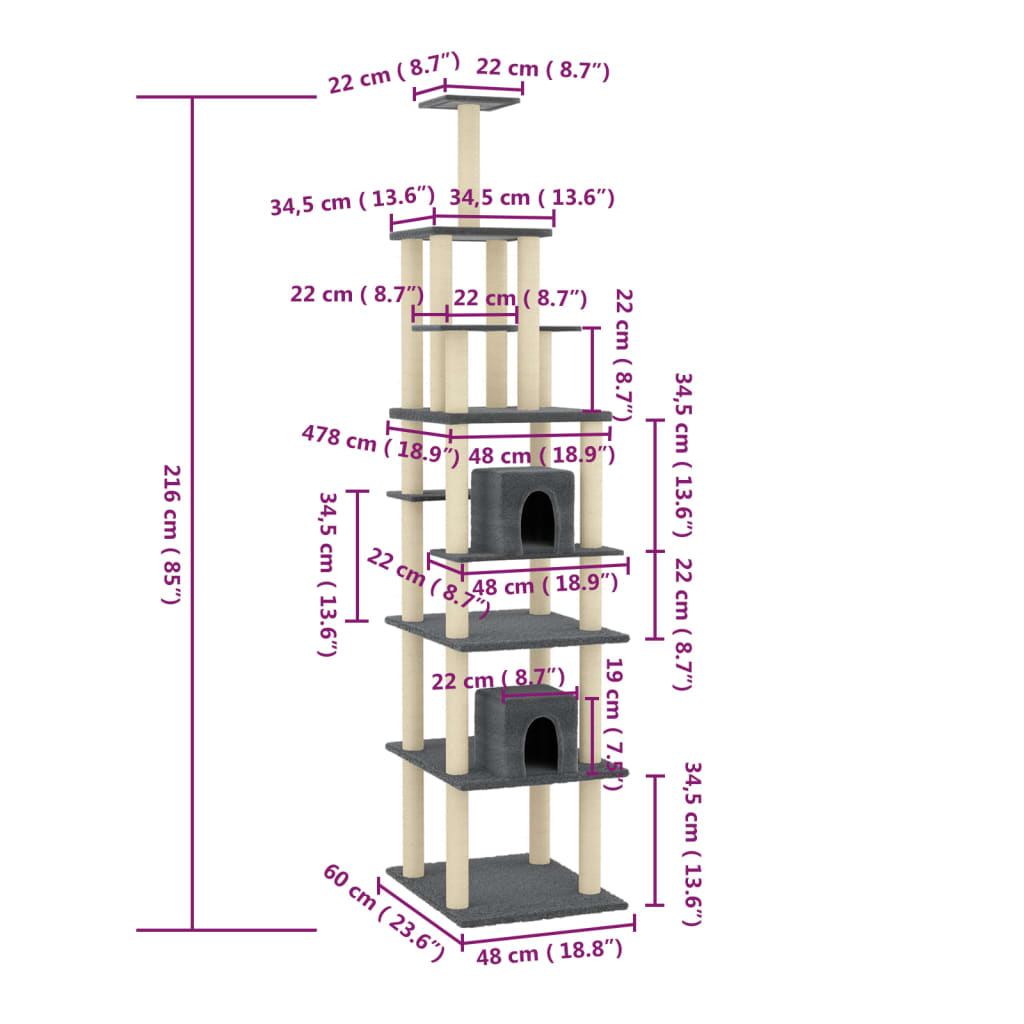 Kattmöbel Klösträd med klöspelare i sisal mörkgrå 216 cm