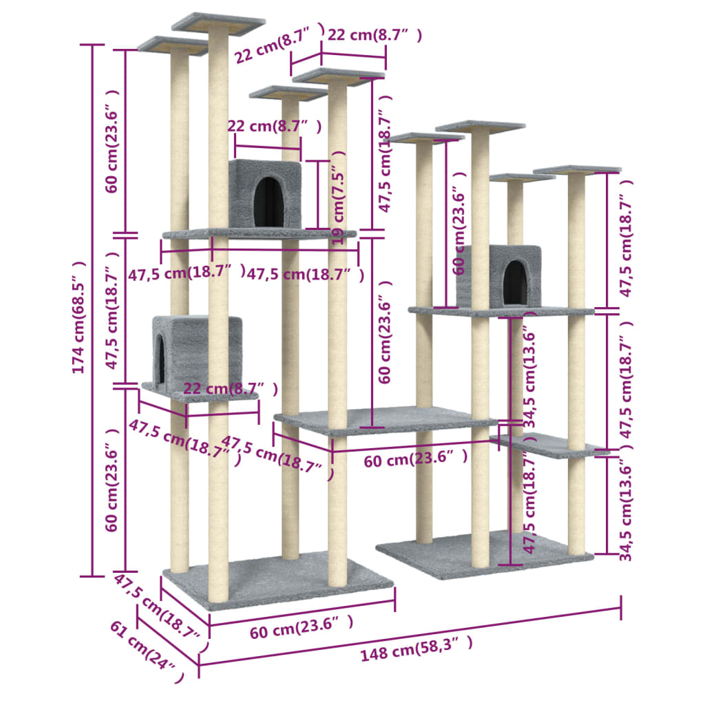 Kattmöbel Klösträd med sisalpelare ljusgrå 174 cm