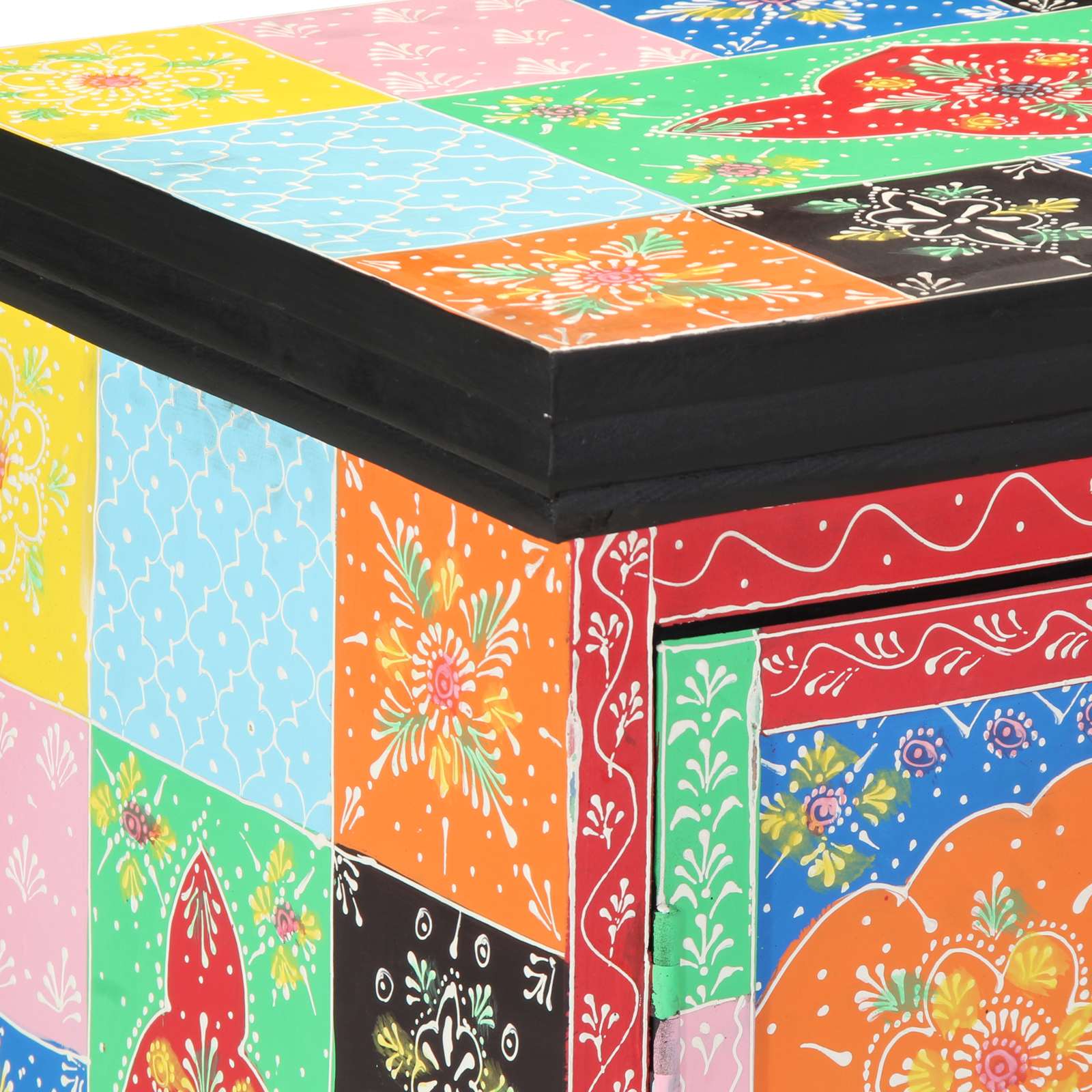 - Unik design: Bordet har ett färgglatt lapptäckesmönster som verkligen fångar ögat och gör detta stycke till ett slående blickfång i vilket rum som helst.