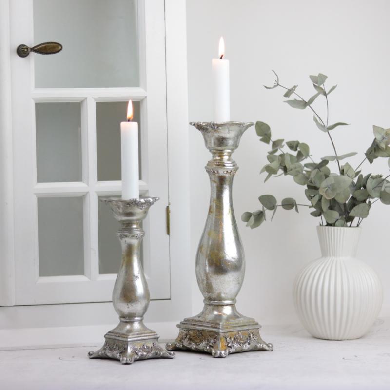 Hög och juvlig ljusstake med många vackra detaljer i sliten romantisk stil