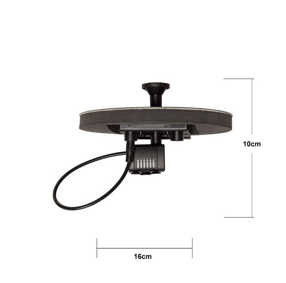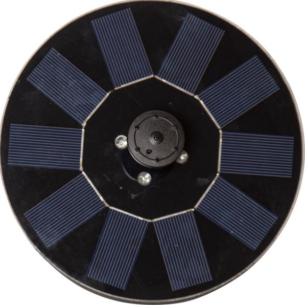 Denna fontän drivs av solcellsenergi som laddar det medföljande batteriet och passar för fågelbad eller en liten damm. Välj det munstycke som du önskar, det medföljer 5 stycken olika, pumpen placeras i botten på paneldelen och sist sätts kontakten från pumpen in i panelen. Placera fontänen så att pumpdelen helt täcks av vatten och panelen med munstycke är placerad uppåt. Observera att pumpen EJ ska monteras innan det är dags att placera den i fågelbadet eller dammen, när solen laddar panelen så börjar vattnet att porla. När mörkret sedan faller så lyser även fontänen med olikfärgade LED lampor. Fontänen fungerar endast om solen kommer åt att lysa på paneldelen.